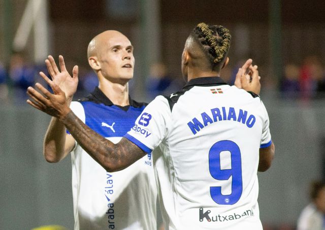 开场仅8分钟,马里亚诺接到队友右路传中,高高跃起头球攻门,皮球弹地之后入网,阿拉维斯1-0领先。