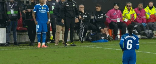 第14分钟,拉蒂乌铲倒维尼修斯,裁判出示黄牌